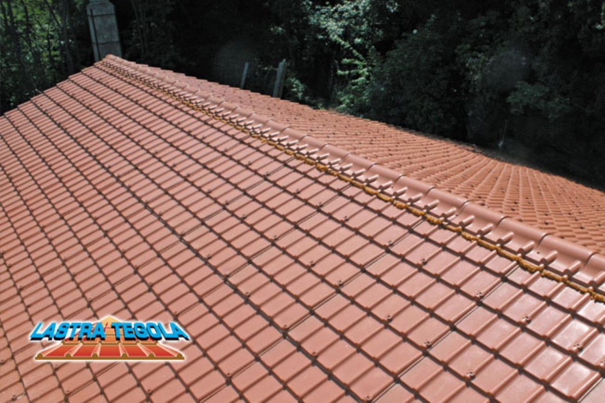 Lastra di copertura stratificata realizzata in Polim-Cryl . La lastra di copertura tegola , ripropone la tipica