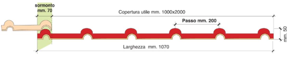 forma della tegola marsigliese ed e' disponibile in misura standard di 2,08 mt.